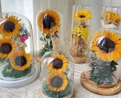 अनंत सूरजमुखी अनंत फूल सूरजमुखी उपहार बॉक्स ग्लास गुंबद गुलदस्ता फूल सामग्री संरक्षित फूल सूरजमुखी थोक